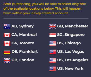 It offers static Ghost IP addresses in 9 countries, which are mentioned below: