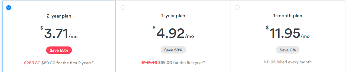 - You’ll be redirected to the account creation page, where you can choose the best plan according to you. However, the NordVPN best-discounted price is $3.71/mo., for the 2-year plan.