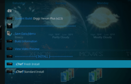When the download is completed, head back to the Kodi home screen, and you’ll see the Diggz Xenon Build downloaded on Kodi!